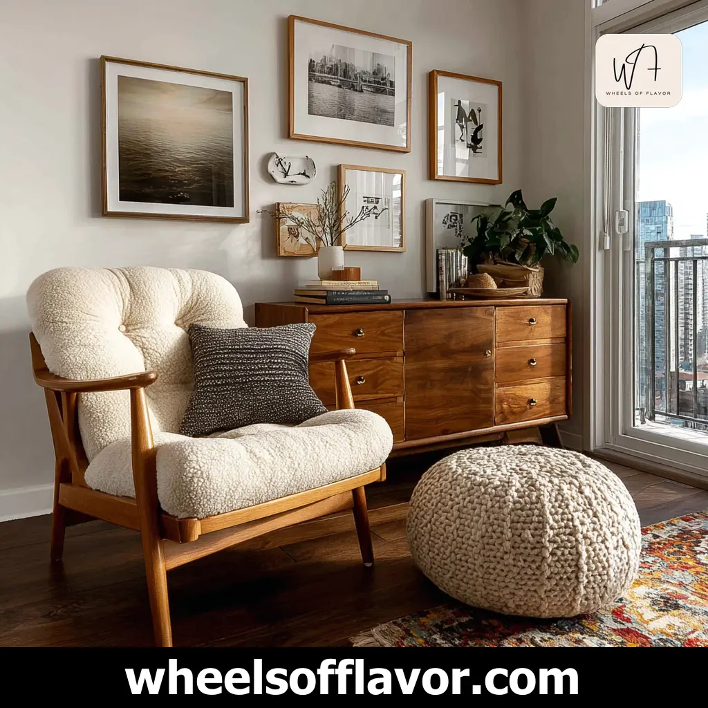 Boho mid century modern decor is all about creating inviting spaces. Design a cozy reading nook with a mid century armchair, a woven throw, and a stack of vintage books. Add a small side table with a ceramic lamp and a potted plant to complete the look. These nooks encourage relaxation and add a personal touch to your home.