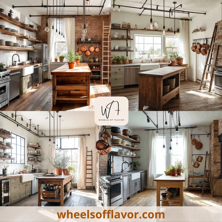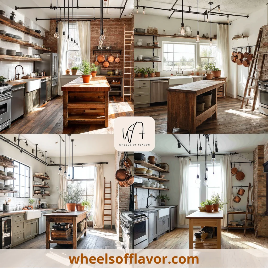 A well-thought-out layout is crucial for executing industrial farmhouse kitchen ideas effectively. Focus on an open-plan design that promotes flow and socialization, typical in farmhouse styles, while incorporating industrial elements like exposed ductwork or concrete floors. Position the sink under a window to maximize natural light and views, enhancing the airy feel. The island should be spacious, possibly with a butcher block top for food prep and additional seating. Ensure that storage is ample but unobtrusive; use cabinets with a distressed finish or open shelves to maintain the rustic-industrial vibe. Lighting plays a big role; place task lighting under cabinets and ambient lighting from industrial fixtures to create a warm atmosphere. Consider the work triangle—sink, stove, and refrigerator—to optimize efficiency. For smaller spaces, use vertical storage with metal racks or hooks for pots and pans. This layout not only looks stylish but also supports daily activities, from cooking to entertaining. Internal linking: Explore more on kitchen layouts at https://wheelsoflavor.com/kitchen-design-tips. By prioritizing functionality, your industrial farmhouse kitchen will be a joy to use every day.
