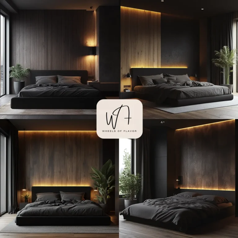 Consider adding LED strip lights under the bed or behind a headboard for a subtle glow. These elements highlight the room’s dark tones without overwhelming the space, creating a perfect balance of form and function.
