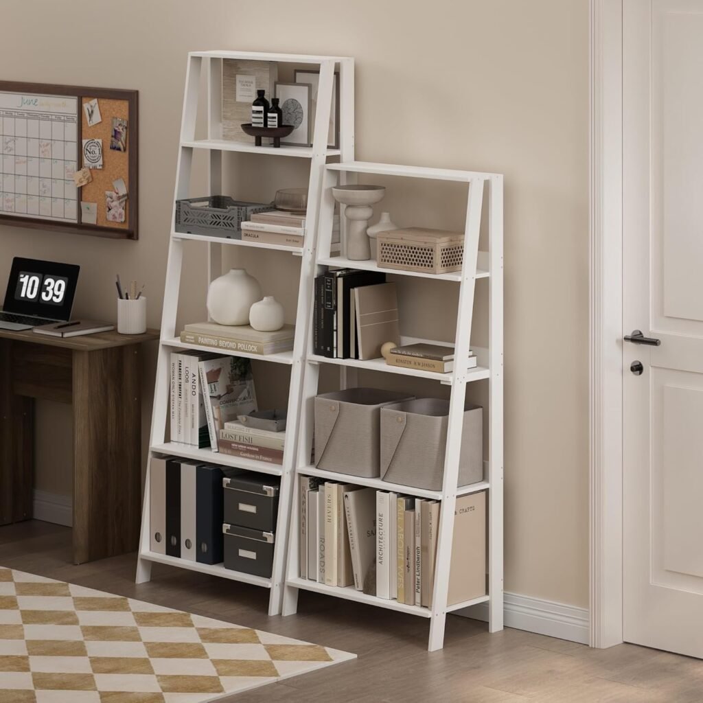 Start with the SoBuy FRG15-W Ladder Style Wall Bookcase (white, 4 levels). It’s slim, modern, and gives you vertical storage without eating up floor space. Pop your favorite books, a couple of plants 🌿, or even framed photos on there for that personal touch. It’s like functional art against your wall!