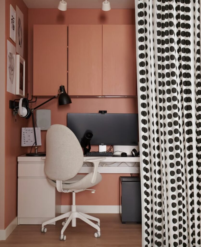 For windows, the ROOM99 Aura Curtain with Rod Pocket in smooth white is perfect. It lets in just the right amount of natural light ☀️ while still keeping things private. Add the Lightweight Decorative Pelmet above to frame your windows—it’s a little detail that makes the whole space feel polished and stylish.