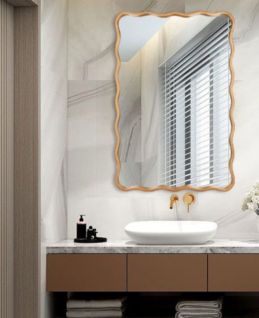 - With Wavy design,Brushed Gold framed mirror looks elegant and soft.Good corrosion resistance and wear resistance.