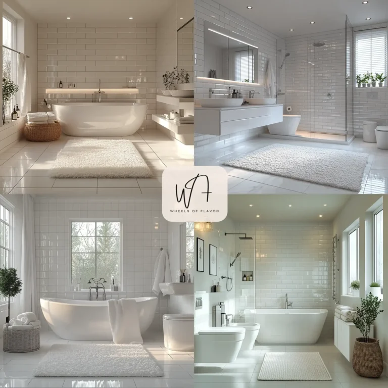 A white monochromatic bathroom exudes cleanliness and serenity. Use glossy white subway tiles for the walls, matte white fixtures, and a textured white rug to add dimension. Incorporate chrome or silver accents for a touch of sparkle. This timeless look is perfect for a spa-like retreat.