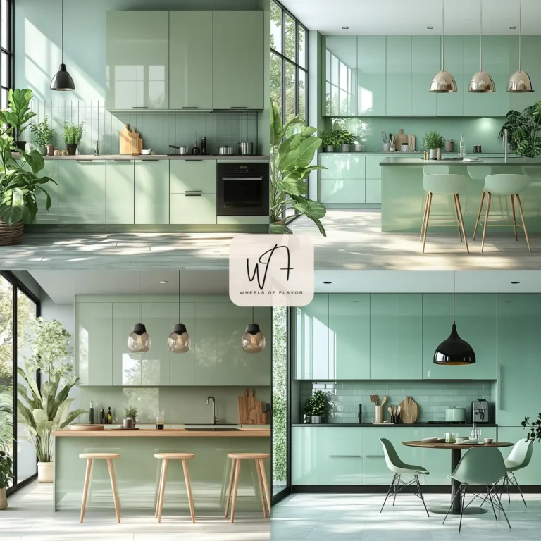 A mint green kitchen with pale green cabinets, a slightly darker green backsplash, and matching appliances creates a crisp and contemporary look. This approach is perfect for homeowners who want a clean, airy vibe.