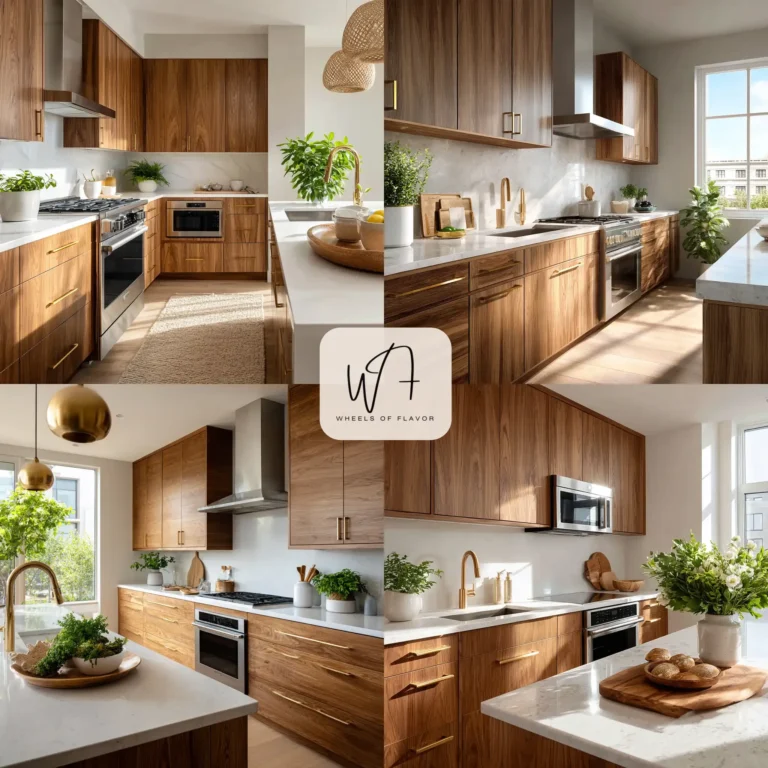 Warm wood kitchen cabinets shine when paired with neutral countertops like white quartz or soft gray granite. The contrast highlights the wood’s natural beauty while keeping the space bright and airy. For inspiration, check out Wheels of Flavor’s Styles and Trends for more ideas on balancing textures and colors in your kitchen.